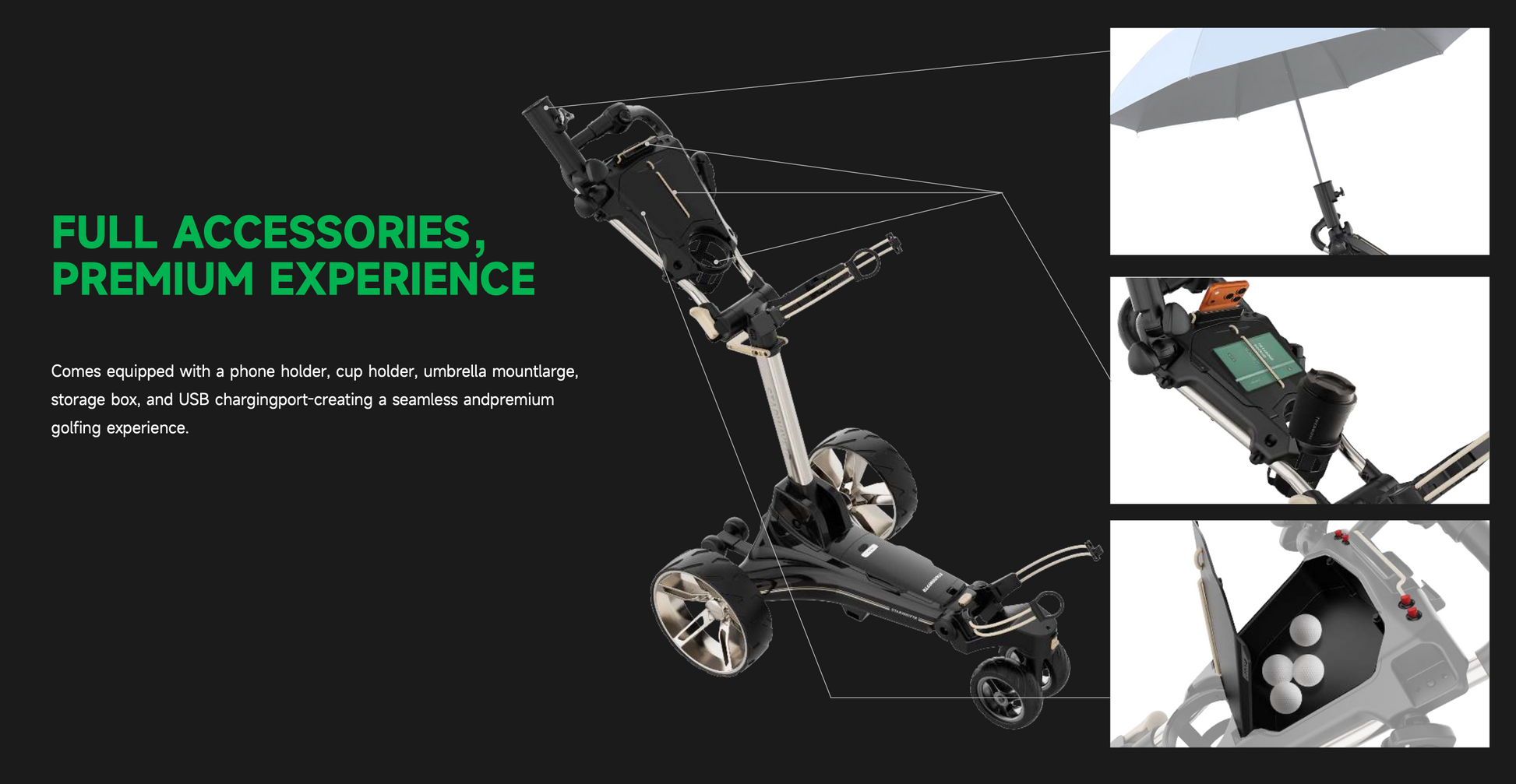 adds the technology serious golfers demand. Dual 134W motors deliver